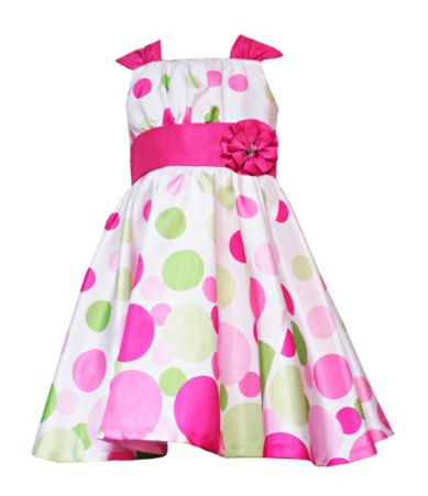 I need some advice/help from anyone who may read my blog. I would like my flower girl to have a dress she can wear again; I'm not really looking for the traditional white or ivory flower girl dress. My wedding colors are navy and apple/lime green. The wedding is in July outside in Virginia and it will be hot! I think I would love something with polka-dots, ribbons and/or bows. I have found a few dresses that I like, but not in my color scheme (examples below).